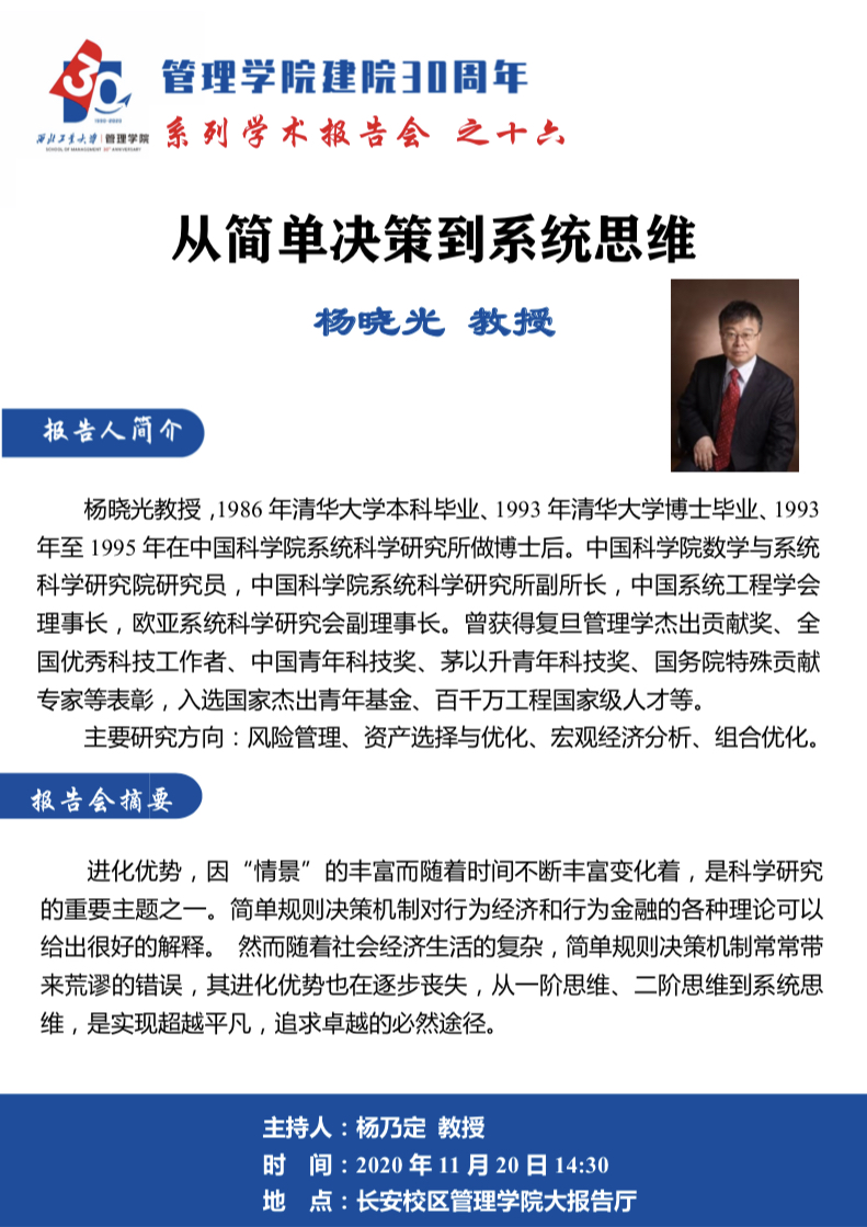 下一条:【厕拍 建院30周年系列学术报告会之十五】竞合供应链中的技术依存和生产时序决策研究