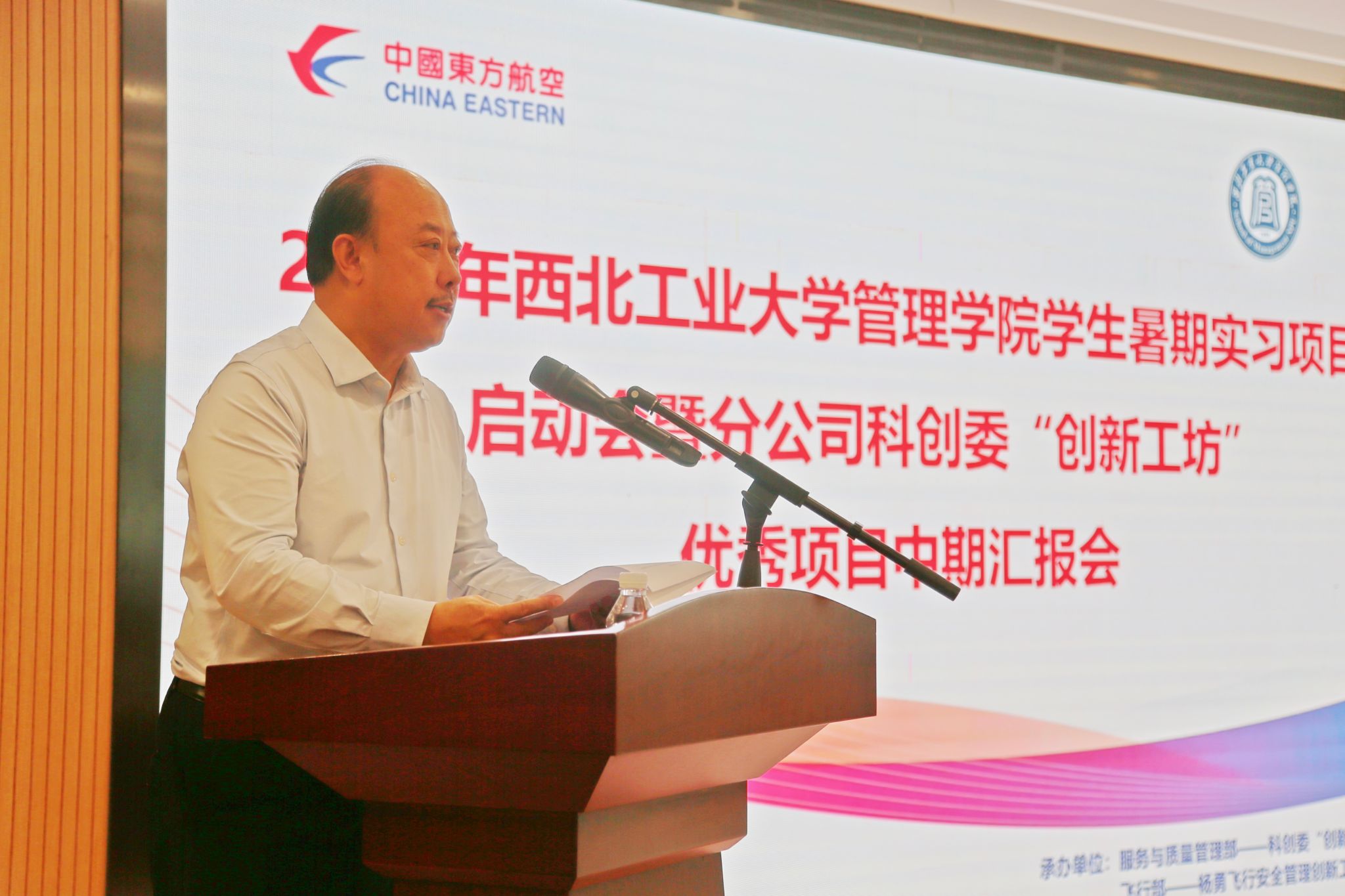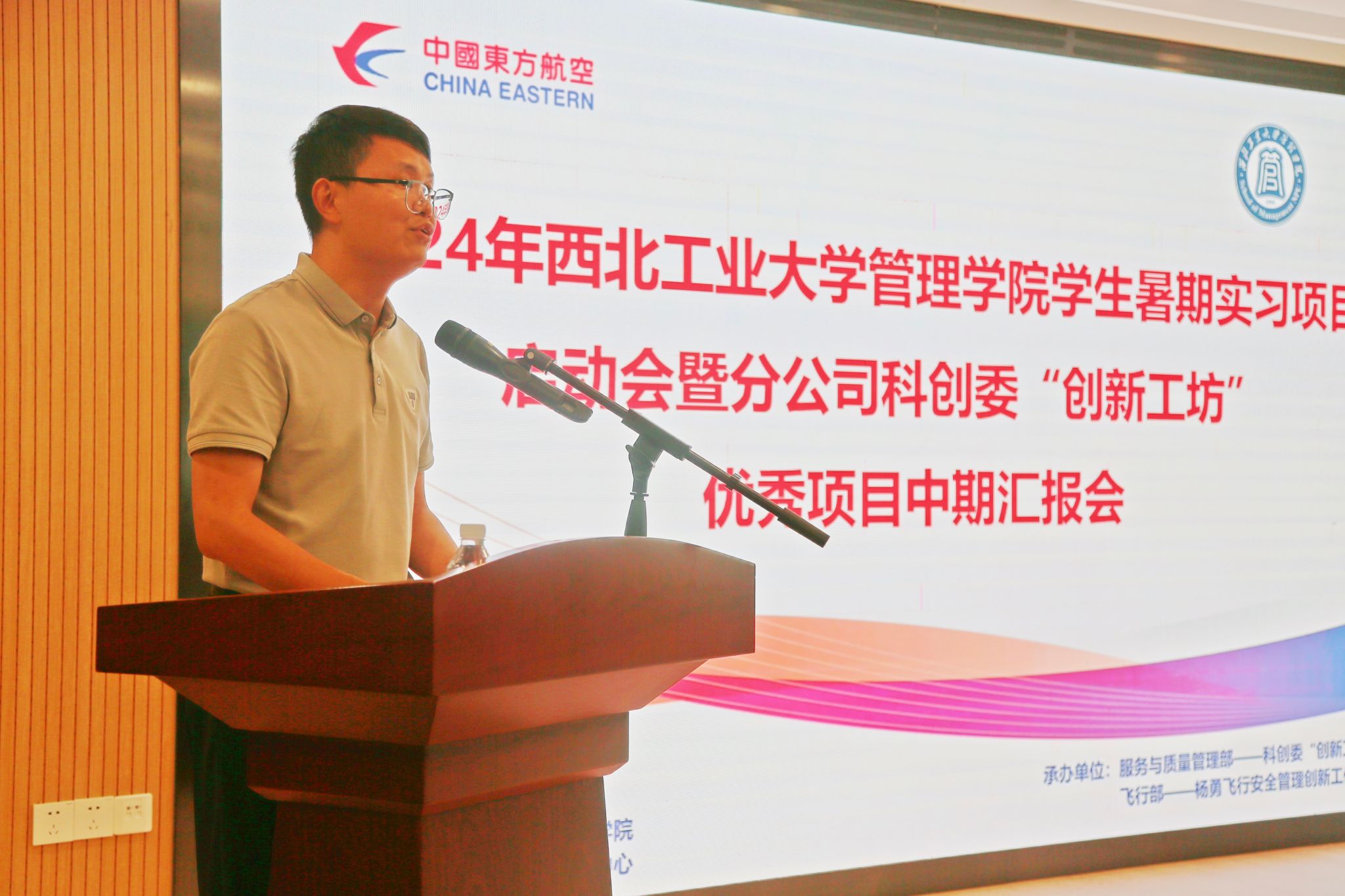 学生吕嘉尧作为实习生代表发言,表示将积极践行西工大人“三实一新”的校风精神,同时深入学习东方航空管理的高标准和严格要求,努力将这种严谨的态度融入到学习工作当中。
