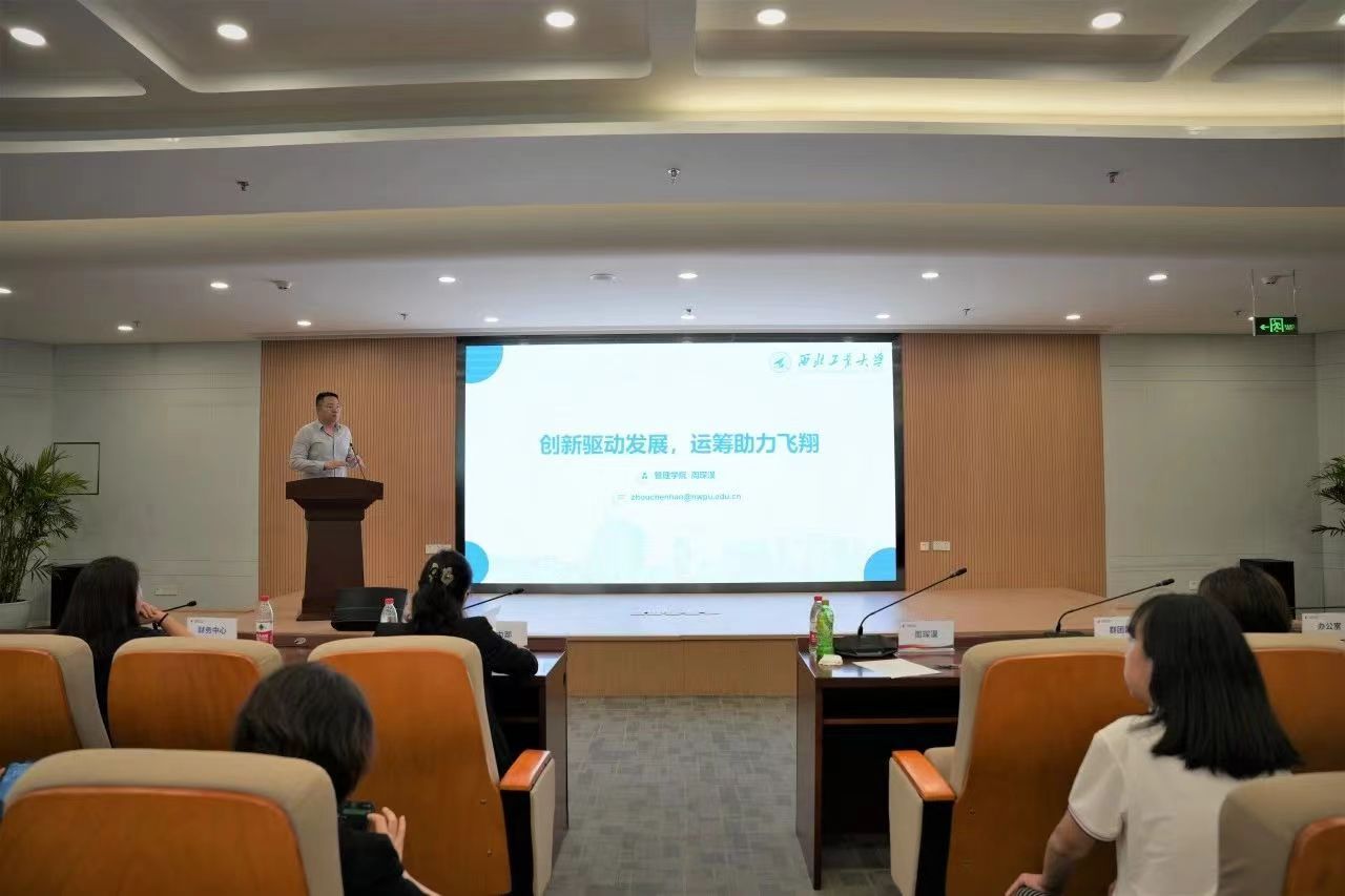 周琛淏教授从运筹优化的角度阐述了本次实习的意义。他解释说,从一个事件的发生到最后做的决策,中间包含4个过程,即从事件中提取数据、处理数据以转化为有用的信息、将信息内化为知识以及最终利用这些知识来做出决策。其中,运筹优化的核心在于最后一个阶段—如何使用这些知识进行有效的决策,而实习实践则是让学生们真切感受这一过程,对知识有了新的认知和理解,同时也帮助实习项目得出潜在的可行措施。