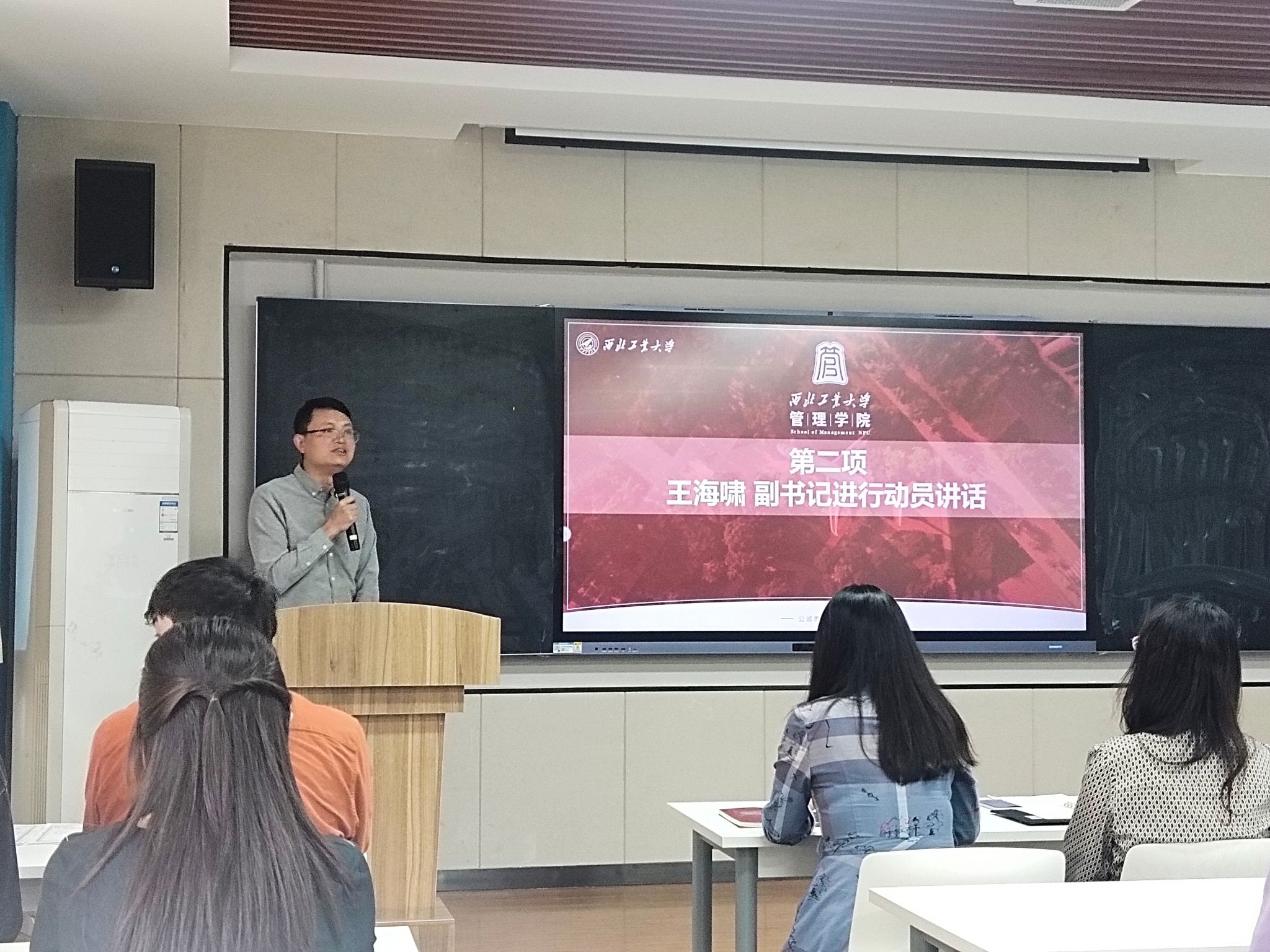 紧接着,王海啸进行动员讲话,强调了学风建设的重要性,并鼓励全体考研学子珍惜学习机会,积极与学业领航员交流,提升自己的实力。他感谢学业领航员的无私奉献和主动担当,并希望他们能以高度的责任感与使命感,发挥朋辈“传帮带”的作用,将自己考研的经验心得传授给考研的同学。