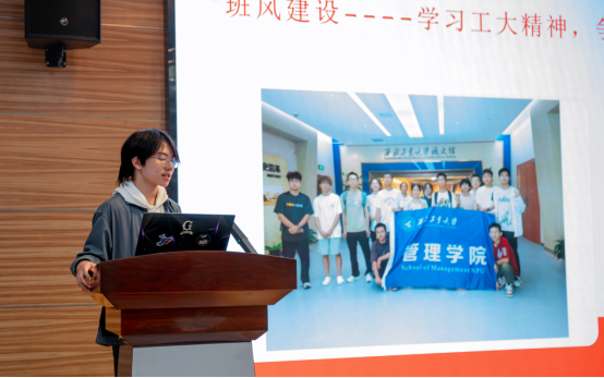 大赛现场气氛热烈、轻松愉悦。参赛的6个班级都精心制作了PPT,从班徽、班旗、班服设计,到班规班训的制定,再到破冰活动的开展,全面展现了各个班级的文化建设。