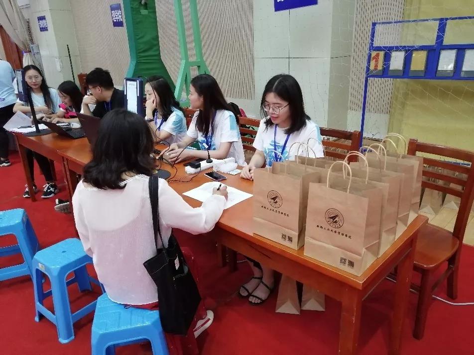 研究生会主席团全体成员组成了一个志愿者团队,帮助新生们先后完成身份证验证、入学注册、校园一卡通领取、签名报到等工作。
