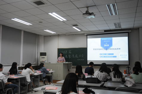 接着,参与竞选的同学按照抽签顺序依次进行了答辩。每位同学都分别从个人情况、竞选的岗位、竞选优势等方面展开了演讲,并对厕拍