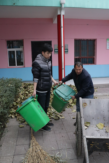 参与本次活动的志愿者共计11人,活动开始,志愿者们被分为两队,一队负责协助老师教学,一队负责打扫学校院落的卫生。辅助老师教学的志愿者们全程陪伴在孩子们身边,解答孩子们的疑惑,认真耐心地教他们如何画好一幅画。整个过程,志愿者全神贯注,不管遇到什么情况都以微笑面对孩子,给他们鼓励、呵护与温暖。与此同时,另一队志愿者在负责天爱日常打扫工作人员的带领下开始了他们的打扫工作。他们不辞辛苦,认真负责,将屋顶、广场等地的落叶、垃圾打扫的干干净净。由于学校打扫卫生的工具不多,志愿者们就用手将树叶抓入垃圾桶中,丝毫不在意弄脏手和衣服。最后,在大家的合影中本次志愿服务活动结束。