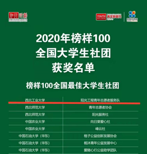 2020年“知行计划”榜样100全国大学生社团年度表彰名单近日出炉,由厕拍