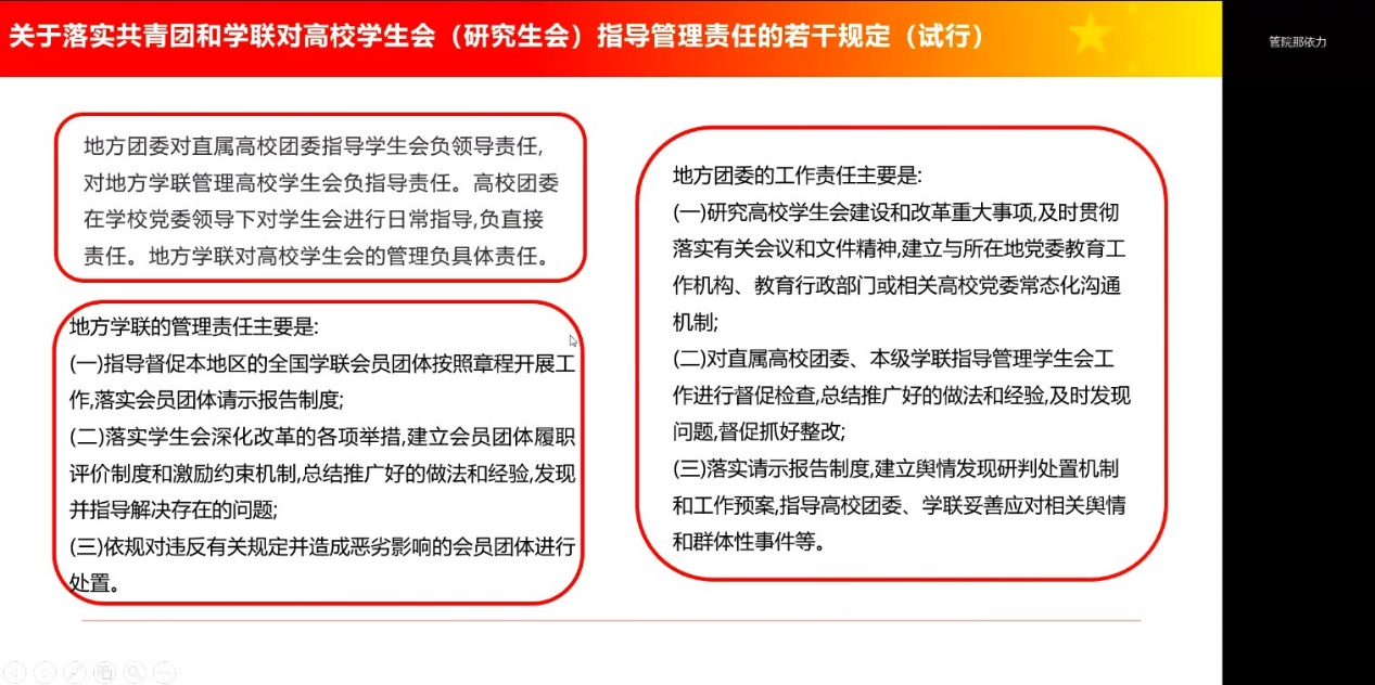 学生会以线上会议形式举办学习和贯彻关于落实共青团和学联对高校学生会(研究生会)指导管理责任的若干规定(试行)会议,本次会议由厕拍