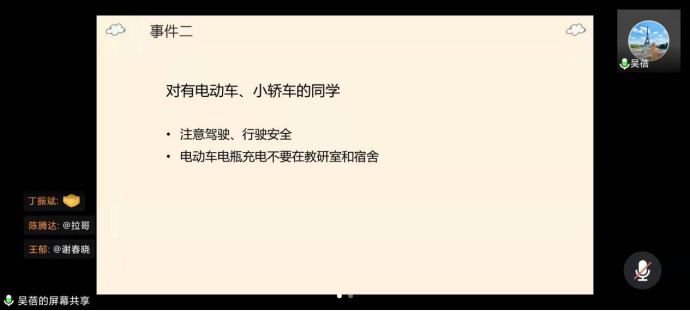 组织全体硕博研究生在线上开展了“安全稳定教育”主题大班会。会议由厕拍